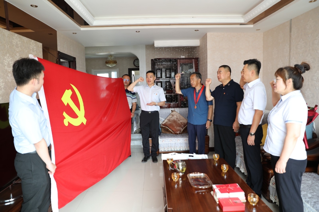 一朝宣誓入党,一生为党的事业奋斗。8月2日,集团公司党委委员、纪检委书记、工会主席张立峰带领公司青年党员走访慰问公司党龄达到50周年的老党员,为他们颁授“光荣在党50年”纪念章。